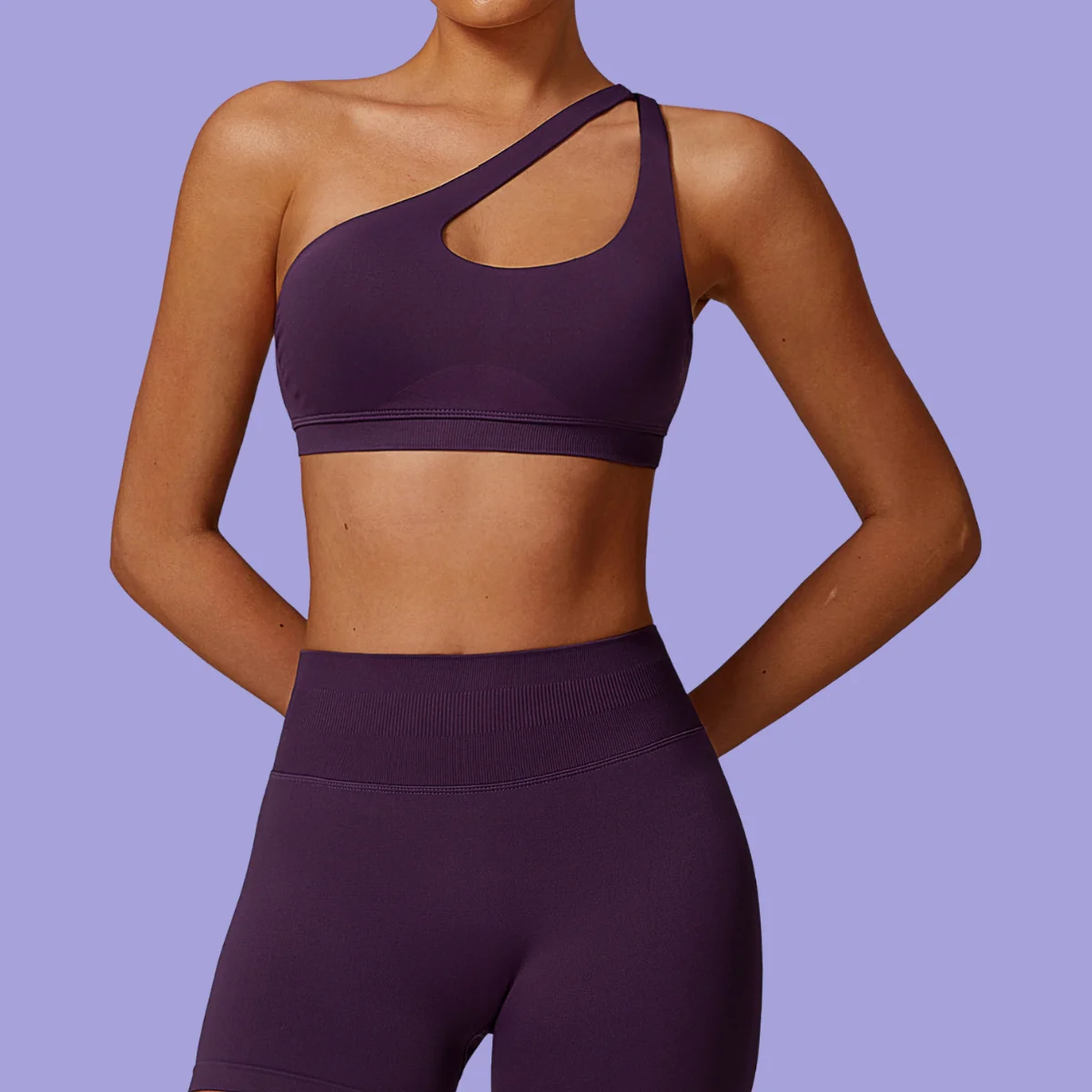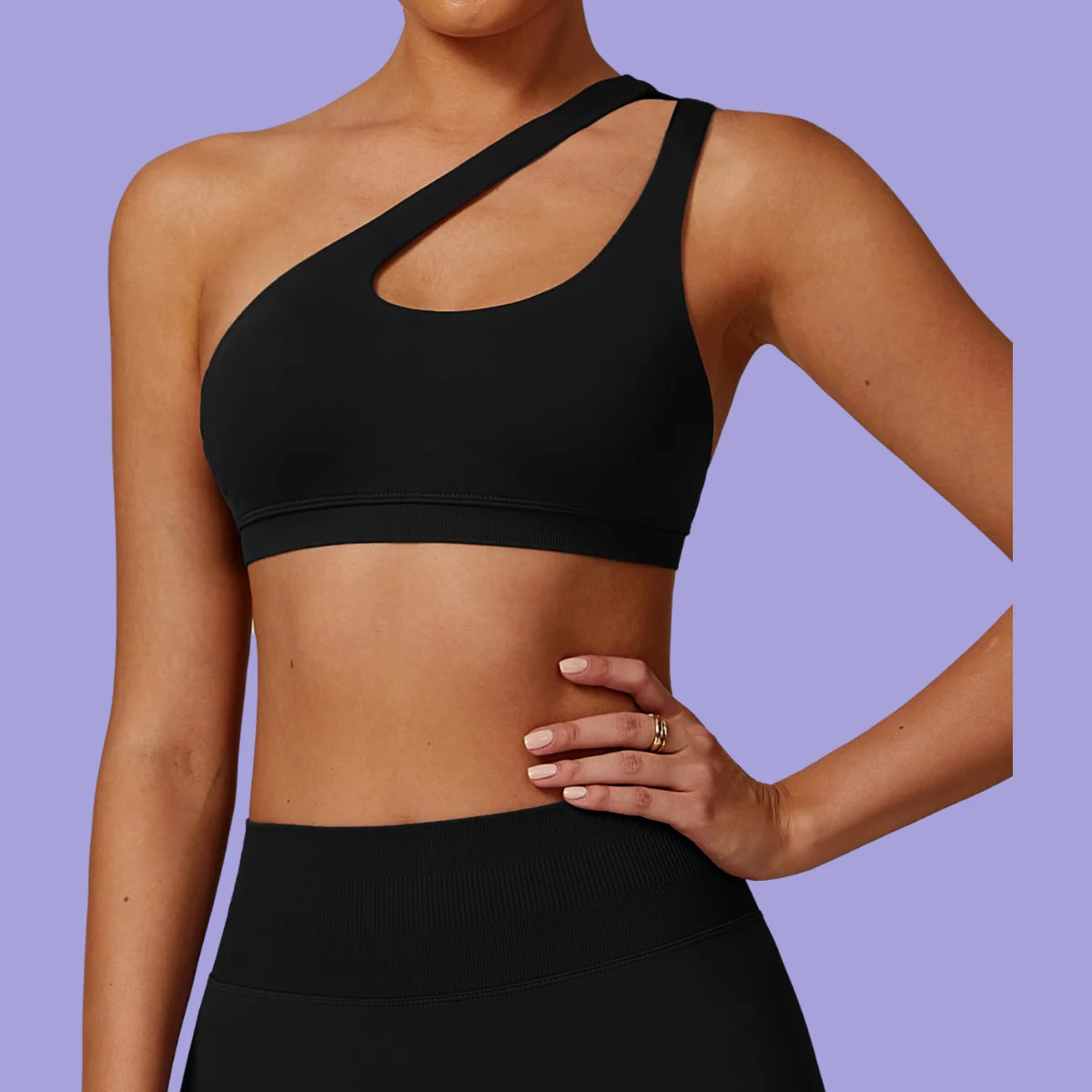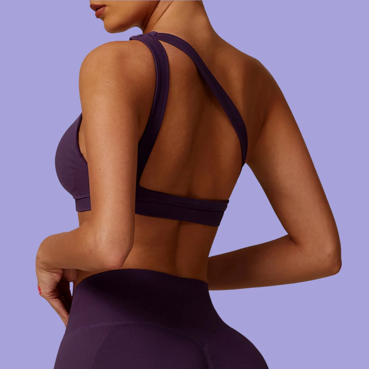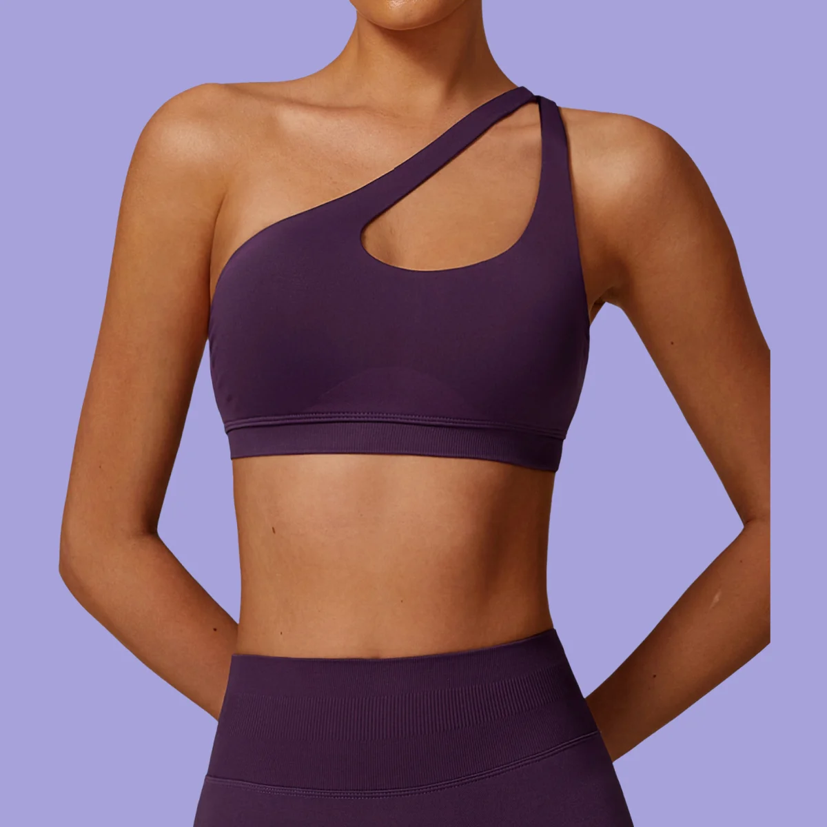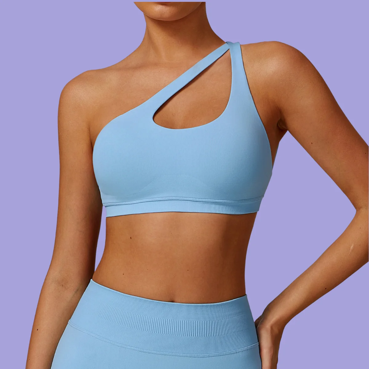 Female Sexy Soft Asymmetrical Straps Yoga Bra Quick Dry Workout Fitness Sports Bra with Breathable Feature Shock-Proof